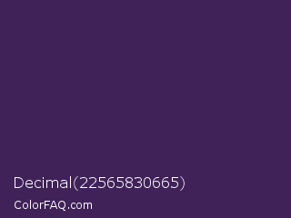 Decimal 22565830665 Color is a dark purple color and the nearest color is Deep Grape #381a51. Hex code #402259 and RGB value is rgb(64,34,89). In RGB color space, this color is composed of 25% red, 13% green, 35% blue, In CMYK color space, this color is composed of 28% cyan, 62% magenta, 0% yellow , 65% black , In HSL color space, this color has a hue angle of 273° , 45% saturation and 24% lightness.