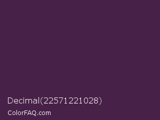 Decimal 22571221028 Color is a very dark magenta color and the nearest color is Deep Grape #381a51. Hex code #482148 and RGB value is rgb(72,33,72). In RGB color space, this color is composed of 28% red, 13% green, 28% blue, In CMYK color space, this color is composed of 0% cyan, 54% magenta, 0% yellow , 72% black , In HSL color space, this color has a hue angle of 300° , 37% saturation and 21% lightness.