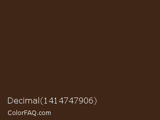 Decimal 1414747906 Color is a very dark orange color and the nearest color is Cork #40291d. Hex code #402616 and RGB value is rgb(64,38,22). In RGB color space, this color is composed of 25% red, 15% green, 9% blue, In CMYK color space, this color is composed of 0% cyan, 41% magenta, 66% yellow , 75% black , In HSL color space, this color has a hue angle of 23° , 49% saturation and 17% lightness.