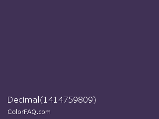 Decimal 1414759809 Color is a dark violet color and the nearest color is Martinique #363050. Hex code #403155 and RGB value is rgb(64,49,85). In RGB color space, this color is composed of 25% red, 19% green, 33% blue, In CMYK color space, this color is composed of 25% cyan, 42% magenta, 0% yellow , 67% black , In HSL color space, this color has a hue angle of 265° , 27% saturation and 26% lightness.