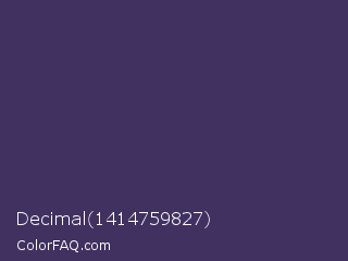 Decimal 1414759827 Color is a dark indigo color and the nearest color is Jacarta #3a2a6a. Hex code #403161 and RGB value is rgb(64,49,97). In RGB color space, this color is composed of 25% red, 19% green, 38% blue, In CMYK color space, this color is composed of 34% cyan, 49% magenta, 0% yellow , 62% black , In HSL color space, this color has a hue angle of 259° , 33% saturation and 29% lightness.