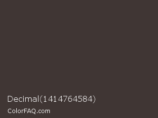 Decimal 1414764584 Color is a dark red color and the nearest color is Masala #403b38. Hex code #403634 and RGB value is rgb(64,54,52). In RGB color space, this color is composed of 25% red, 21% green, 20% blue, In CMYK color space, this color is composed of 0% cyan, 16% magenta, 19% yellow , 75% black , In HSL color space, this color has a hue angle of 10° , 10% saturation and 23% lightness.
