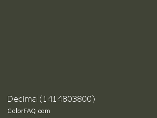 Decimal 1414803800 Color is a dark lime color and the nearest color is Armadillo #433e37. Hex code #404336 and RGB value is rgb(64,67,54). In RGB color space, this color is composed of 25% red, 26% green, 21% blue, In CMYK color space, this color is composed of 4% cyan, 0% magenta, 19% yellow , 74% black , In HSL color space, this color has a hue angle of 74° , 11% saturation and 24% lightness.