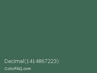 Decimal 1414867223 Color is a normal green color and the nearest color is Mineral Green #3f5d53. Hex code #406955 and RGB value is rgb(64,105,85). In RGB color space, this color is composed of 25% red, 41% green, 33% blue, In CMYK color space, this color is composed of 39% cyan, 0% magenta, 19% yellow , 59% black , In HSL color space, this color has a hue angle of 151° , 24% saturation and 33% lightness.