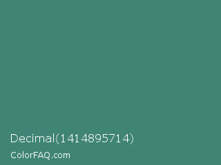 Decimal 1414895714 Color is a normal cyan color and the nearest color is Viridian #40826d. Hex code #408476 and RGB value is rgb(64,132,118). In RGB color space, this color is composed of 25% red, 52% green, 46% blue, In CMYK color space, this color is composed of 52% cyan, 0% magenta, 11% yellow , 48% black , In HSL color space, this color has a hue angle of 168° , 35% saturation and 38% lightness.