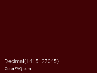 Decimal 1415127045 Color is a very dark red color and the nearest color is Burnt Maroon #420303. Hex code #410205 and RGB value is rgb(65,2,5). In RGB color space, this color is composed of 25% red, 1% green, 2% blue, In CMYK color space, this color is composed of 0% cyan, 97% magenta, 92% yellow , 75% black , In HSL color space, this color has a hue angle of 357° , 94% saturation and 13% lightness.
