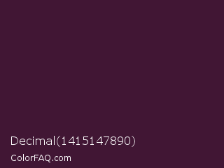 Decimal 1415147890 Color is a very dark magenta color and the nearest color is Dark Purple #301934. Hex code #411634 and RGB value is rgb(65,22,52). In RGB color space, this color is composed of 25% red, 9% green, 20% blue, In CMYK color space, this color is composed of 0% cyan, 66% magenta, 20% yellow , 75% black , In HSL color space, this color has a hue angle of 318° , 49% saturation and 17% lightness.