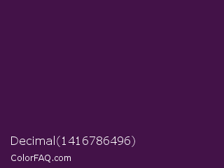 Decimal 1416786496 Color is a very dark magenta color and the nearest color is Loulou #460b41. Hex code #431248 and RGB value is rgb(67,18,72). In RGB color space, this color is composed of 26% red, 7% green, 28% blue, In CMYK color space, this color is composed of 7% cyan, 75% magenta, 0% yellow , 72% black , In HSL color space, this color has a hue angle of 294° , 60% saturation and 18% lightness.