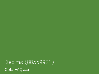 Decimal 88559921 Color is a normal green color and the nearest color is May Green #4c9141. Hex code #538b3b and RGB value is rgb(83,139,59). In RGB color space, this color is composed of 33% red, 55% green, 23% blue, In CMYK color space, this color is composed of 40% cyan, 0% magenta, 58% yellow , 45% black , In HSL color space, this color has a hue angle of 102° , 40% saturation and 39% lightness.