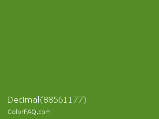 Decimal 88561177 Color is a normal green color and the nearest color is Vida Loca #549019. Hex code #538d23 and RGB value is rgb(83,141,35). In RGB color space, this color is composed of 33% red, 55% green, 14% blue, In CMYK color space, this color is composed of 41% cyan, 0% magenta, 75% yellow , 45% black , In HSL color space, this color has a hue angle of 93° , 60% saturation and 35% lightness.