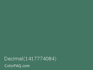 Decimal 1417774084 Color is a normal green color and the nearest color is Hookers Green #49796b. Hex code #447664 and RGB value is rgb(68,118,100). In RGB color space, this color is composed of 27% red, 46% green, 39% blue, In CMYK color space, this color is composed of 42% cyan, 0% magenta, 15% yellow , 54% black , In HSL color space, this color has a hue angle of 158° , 27% saturation and 36% lightness.