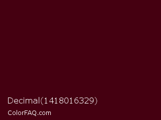 Decimal 1418016329 Color is a very dark red color and the nearest color is Temptress #3b000b. Hex code #450011 and RGB value is rgb(69,0,17). In RGB color space, this color is composed of 27% red, 0% green, 7% blue, In CMYK color space, this color is composed of 0% cyan, 100% magenta, 75% yellow , 73% black , In HSL color space, this color has a hue angle of 345° , 100% saturation and 14% lightness.