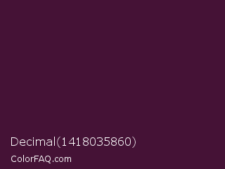 Decimal 1418035860 Color is a very dark magenta color and the nearest color is Loulou #460b41. Hex code #451236 and RGB value is rgb(69,18,54). In RGB color space, this color is composed of 27% red, 7% green, 21% blue, In CMYK color space, this color is composed of 0% cyan, 74% magenta, 22% yellow , 73% black , In HSL color space, this color has a hue angle of 318° , 59% saturation and 17% lightness.