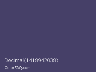 Decimal 1418942038 Color is a normal indigo color and the nearest color is Mulled Wine #4e4562. Hex code #464068 and RGB value is rgb(70,64,104). In RGB color space, this color is composed of 27% red, 25% green, 41% blue, In CMYK color space, this color is composed of 33% cyan, 38% magenta, 0% yellow , 59% black , In HSL color space, this color has a hue angle of 249° , 24% saturation and 33% lightness.