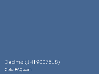 Decimal 1419007618 Color is a normal blue color and the nearest color is Queen Blue #436b95. Hex code #466792 and RGB value is rgb(70,103,146). In RGB color space, this color is composed of 27% red, 40% green, 57% blue, In CMYK color space, this color is composed of 52% cyan, 29% magenta, 0% yellow , 43% black , In HSL color space, this color has a hue angle of 214° , 35% saturation and 42% lightness.