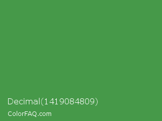 Decimal 1419084809 Color is a normal green color and the nearest color is May Green #4c9141. Hex code #469949 and RGB value is rgb(70,153,73). In RGB color space, this color is composed of 27% red, 60% green, 29% blue, In CMYK color space, this color is composed of 54% cyan, 0% magenta, 52% yellow , 40% black , In HSL color space, this color has a hue angle of 122° , 37% saturation and 44% lightness.
