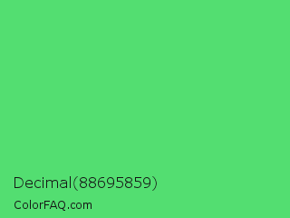 Decimal 88695859 Color is a normal green color and the nearest color is Emerald #50c878. Hex code #53de71 and RGB value is rgb(83,222,113). In RGB color space, this color is composed of 33% red, 87% green, 44% blue, In CMYK color space, this color is composed of 63% cyan, 0% magenta, 49% yellow , 13% black , In HSL color space, this color has a hue angle of 133° , 68% saturation and 60% lightness.