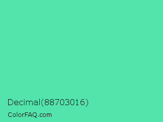 Decimal 88703016 Color is a light green color and the nearest color is Eucalyptus #44d7a8. Hex code #53e4ac and RGB value is rgb(83,228,172). In RGB color space, this color is composed of 33% red, 89% green, 67% blue, In CMYK color space, this color is composed of 64% cyan, 0% magenta, 25% yellow , 11% black , In HSL color space, this color has a hue angle of 157° , 73% saturation and 61% lightness.