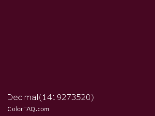 Decimal 1419273520 Color is a very dark rose color and the nearest color is Cab Sav #4d0a18. Hex code #470722 and RGB value is rgb(71,7,34). In RGB color space, this color is composed of 28% red, 3% green, 13% blue, In CMYK color space, this color is composed of 0% cyan, 90% magenta, 52% yellow , 72% black , In HSL color space, this color has a hue angle of 335° , 82% saturation and 15% lightness.