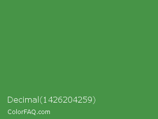 Decimal 1426204259 Color is a normal green color and the nearest color is May Green #4c9141. Hex code #479447 and RGB value is rgb(71,148,71). In RGB color space, this color is composed of 28% red, 58% green, 28% blue, In CMYK color space, this color is composed of 52% cyan, 0% magenta, 52% yellow , 42% black , In HSL color space, this color has a hue angle of 120° , 35% saturation and 43% lightness.