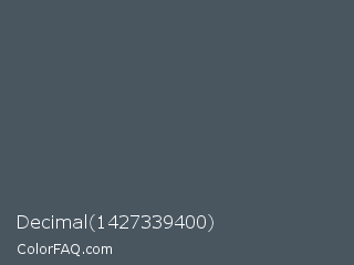 Decimal 1427339400 Color is a normal blue color and the nearest color is Trout #4a4e5a. Hex code #495660 and RGB value is rgb(73,86,96). In RGB color space, this color is composed of 29% red, 34% green, 38% blue, In CMYK color space, this color is composed of 24% cyan, 10% magenta, 0% yellow , 62% black , In HSL color space, this color has a hue angle of 206° , 14% saturation and 33% lightness.