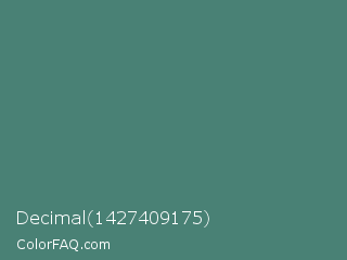 Decimal 1427409175 Color is a normal cyan color and the nearest color is Faded Jade #427977. Hex code #498175 and RGB value is rgb(73,129,117). In RGB color space, this color is composed of 29% red, 51% green, 46% blue, In CMYK color space, this color is composed of 43% cyan, 0% magenta, 9% yellow , 49% black , In HSL color space, this color has a hue angle of 167° , 28% saturation and 40% lightness.