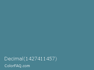 Decimal 1427411457 Color is a normal cyan color and the nearest color is Smalt Blue #51808f. Hex code #498291 and RGB value is rgb(73,130,145). In RGB color space, this color is composed of 29% red, 51% green, 57% blue, In CMYK color space, this color is composed of 50% cyan, 10% magenta, 0% yellow , 43% black , In HSL color space, this color has a hue angle of 193° , 33% saturation and 43% lightness.