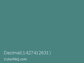 Decimal 1427412631 Color is a normal cyan color and the nearest color is Wintergreen Dream #56887d. Hex code #498481 and RGB value is rgb(73,132,129). In RGB color space, this color is composed of 29% red, 52% green, 51% blue, In CMYK color space, this color is composed of 45% cyan, 0% magenta, 2% yellow , 48% black , In HSL color space, this color has a hue angle of 177° , 29% saturation and 40% lightness.