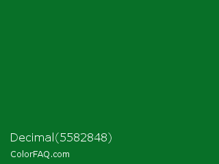 Decimal 5582848 Color is a dark green color and the nearest color is La Salle Green #087830. Hex code #087028 and RGB value is rgb(8,112,40). In RGB color space, this color is composed of 3% red, 44% green, 16% blue, In CMYK color space, this color is composed of 93% cyan, 0% magenta, 64% yellow , 56% black , In HSL color space, this color has a hue angle of 138° , 87% saturation and 24% lightness.