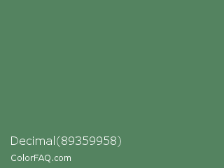 Decimal 89359958 Color is a normal green color and the nearest color is Spring Leaves #578363. Hex code #548360 and RGB value is rgb(84,131,96). In RGB color space, this color is composed of 33% red, 51% green, 38% blue, In CMYK color space, this color is composed of 36% cyan, 0% magenta, 27% yellow , 49% black , In HSL color space, this color has a hue angle of 135° , 22% saturation and 42% lightness.