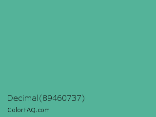 Decimal 89460737 Color is a normal cyan color and the nearest color is Polished Pine #5da493. Hex code #54b399 and RGB value is rgb(84,179,153). In RGB color space, this color is composed of 33% red, 70% green, 60% blue, In CMYK color space, this color is composed of 53% cyan, 0% magenta, 15% yellow , 30% black , In HSL color space, this color has a hue angle of 164° , 38% saturation and 52% lightness.
