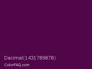 Decimal 1431789878 Color is a very dark magenta color and the nearest color is Loulou #460b41. Hex code #500648 and RGB value is rgb(80,6,72). In RGB color space, this color is composed of 31% red, 2% green, 28% blue, In CMYK color space, this color is composed of 0% cyan, 93% magenta, 10% yellow , 69% black , In HSL color space, this color has a hue angle of 306° , 86% saturation and 17% lightness.