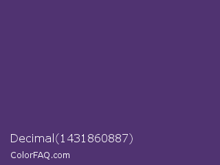 Decimal 1431860887 Color is a normal violet color and the nearest color is Regalia #522d80. Hex code #503371 and RGB value is rgb(80,51,113). In RGB color space, this color is composed of 31% red, 20% green, 44% blue, In CMYK color space, this color is composed of 29% cyan, 55% magenta, 0% yellow , 56% black , In HSL color space, this color has a hue angle of 268° , 38% saturation and 32% lightness.