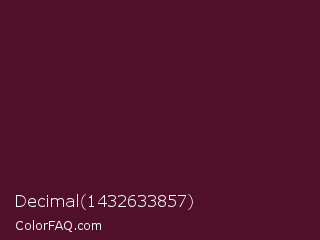 Decimal 1432633857 Color is a very dark rose color and the nearest color is Maroon Oak #520c17. Hex code #511029 and RGB value is rgb(81,16,41). In RGB color space, this color is composed of 32% red, 6% green, 16% blue, In CMYK color space, this color is composed of 0% cyan, 80% magenta, 49% yellow , 68% black , In HSL color space, this color has a hue angle of 337° , 67% saturation and 19% lightness.