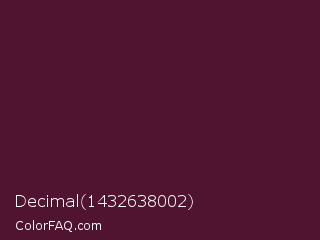 Decimal 1432638002 Color is a very dark rose color and the nearest color is Wine Berry #591d35. Hex code #511430 and RGB value is rgb(81,20,48). In RGB color space, this color is composed of 32% red, 8% green, 19% blue, In CMYK color space, this color is composed of 0% cyan, 75% magenta, 41% yellow , 68% black , In HSL color space, this color has a hue angle of 332° , 60% saturation and 20% lightness.