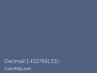 Decimal 1432769153 Color is a normal blue color and the nearest color is Paynes Grey #536878. Hex code #516281 and RGB value is rgb(81,98,129). In RGB color space, this color is composed of 32% red, 38% green, 51% blue, In CMYK color space, this color is composed of 37% cyan, 24% magenta, 0% yellow , 49% black , In HSL color space, this color has a hue angle of 219° , 23% saturation and 41% lightness.