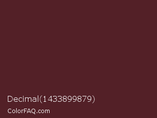 Decimal 1433899879 Color is a dark red color and the nearest color is Caput Mortuum #592720. Hex code #532027 and RGB value is rgb(83,32,39). In RGB color space, this color is composed of 33% red, 13% green, 15% blue, In CMYK color space, this color is composed of 0% cyan, 61% magenta, 53% yellow , 67% black , In HSL color space, this color has a hue angle of 352° , 44% saturation and 23% lightness.