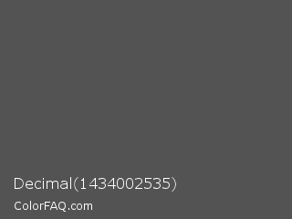 Decimal 1434002535 Color is a normal red color and the nearest color is Davys Grey #555555. Hex code #535353 and RGB value is rgb(83,83,83). In RGB color space, this color is composed of 33% red, 33% green, 33% blue, In CMYK color space, this color is composed of 0% cyan, 0% magenta, 0% yellow , 67% black , In HSL color space, this color has a hue angle of 0° , 0% saturation and 33% lightness.