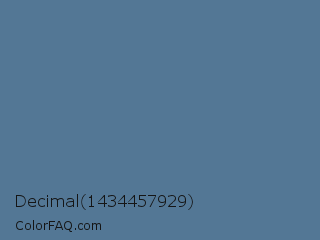 Decimal 1434457929 Color is a normal blue color and the nearest color is Kashmir Blue #507096. Hex code #537795 and RGB value is rgb(83,119,149). In RGB color space, this color is composed of 33% red, 47% green, 58% blue, In CMYK color space, this color is composed of 44% cyan, 20% magenta, 0% yellow , 42% black , In HSL color space, this color has a hue angle of 207° , 28% saturation and 45% lightness.