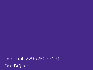 Decimal 22952805513 Color is a normal indigo color and the nearest color is Spanish Violet #4c2882. Hex code #452889 and RGB value is rgb(69,40,137). In RGB color space, this color is composed of 27% red, 16% green, 54% blue, In CMYK color space, this color is composed of 50% cyan, 71% magenta, 0% yellow , 46% black , In HSL color space, this color has a hue angle of 258° , 55% saturation and 35% lightness.