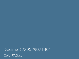 Decimal 22952907140 Color is a normal blue color and the nearest color is Queen Blue #436b95. Hex code #457190 and RGB value is rgb(69,113,144). In RGB color space, this color is composed of 27% red, 44% green, 56% blue, In CMYK color space, this color is composed of 52% cyan, 22% magenta, 0% yellow , 44% black , In HSL color space, this color has a hue angle of 205° , 35% saturation and 42% lightness.