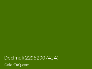 Decimal 22952907414 Color is a very dark green color and the nearest color is Green Leaf #436a0d. Hex code #457200 and RGB value is rgb(69,114,0). In RGB color space, this color is composed of 27% red, 45% green, 0% blue, In CMYK color space, this color is composed of 39% cyan, 0% magenta, 100% yellow , 55% black , In HSL color space, this color has a hue angle of 84° , 100% saturation and 22% lightness.
