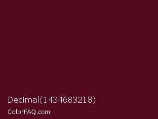 Decimal 1434683218 Color is a very dark rose color and the nearest color is Castro #52001f. Hex code #540820 and RGB value is rgb(84,8,32). In RGB color space, this color is composed of 33% red, 3% green, 13% blue, In CMYK color space, this color is composed of 0% cyan, 90% magenta, 62% yellow , 67% black , In HSL color space, this color has a hue angle of 341° , 83% saturation and 18% lightness.
