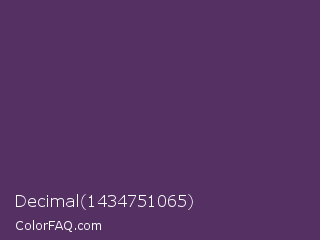 Decimal 1434751065 Color is a dark purple color and the nearest color is Bossanova #4e2a5a. Hex code #543063 and RGB value is rgb(84,48,99). In RGB color space, this color is composed of 33% red, 19% green, 39% blue, In CMYK color space, this color is composed of 15% cyan, 52% magenta, 0% yellow , 61% black , In HSL color space, this color has a hue angle of 282° , 35% saturation and 29% lightness.