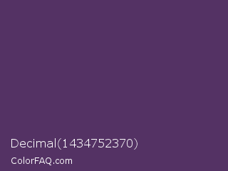 Decimal 1434752370 Color is a dark purple color and the nearest color is English Violet #563c5c. Hex code #543264 and RGB value is rgb(84,50,100). In RGB color space, this color is composed of 33% red, 20% green, 39% blue, In CMYK color space, this color is composed of 16% cyan, 50% magenta, 0% yellow , 61% black , In HSL color space, this color has a hue angle of 281° , 33% saturation and 29% lightness.