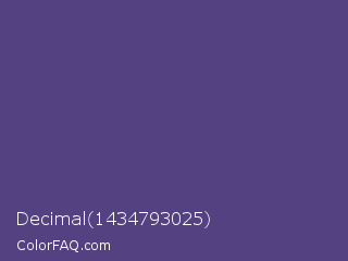 Decimal 1434793025 Color is a normal indigo color and the nearest color is Cyber Grape #58427c. Hex code #544181 and RGB value is rgb(84,65,129). In RGB color space, this color is composed of 33% red, 25% green, 51% blue, In CMYK color space, this color is composed of 35% cyan, 50% magenta, 0% yellow , 49% black , In HSL color space, this color has a hue angle of 258° , 33% saturation and 38% lightness.