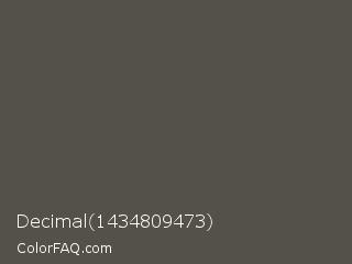 Decimal 1434809473 Color is a normal orange color and the nearest color is Fuscous Gray #54534d. Hex code #545149 and RGB value is rgb(84,81,73). In RGB color space, this color is composed of 33% red, 32% green, 29% blue, In CMYK color space, this color is composed of 0% cyan, 4% magenta, 13% yellow , 67% black , In HSL color space, this color has a hue angle of 44° , 7% saturation and 31% lightness.