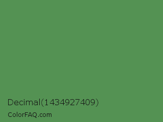 Decimal 1434927409 Color is a normal green color and the nearest color is Middle Green #4d8c57. Hex code #549253 and RGB value is rgb(84,146,83). In RGB color space, this color is composed of 33% red, 57% green, 33% blue, In CMYK color space, this color is composed of 42% cyan, 0% magenta, 43% yellow , 43% black , In HSL color space, this color has a hue angle of 119° , 28% saturation and 45% lightness.