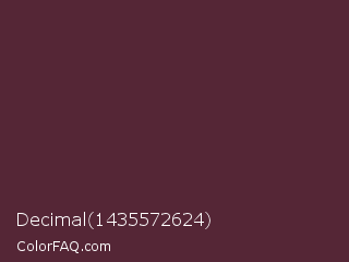 Decimal 1435572624 Color is a dark rose color and the nearest color is Wine Berry #591d35. Hex code #552636 and RGB value is rgb(85,38,54). In RGB color space, this color is composed of 33% red, 15% green, 21% blue, In CMYK color space, this color is composed of 0% cyan, 55% magenta, 36% yellow , 67% black , In HSL color space, this color has a hue angle of 340° , 38% saturation and 24% lightness.