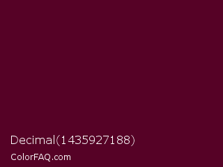 Decimal 1435927188 Color is a very dark rose color and the nearest color is Castro #52001f. Hex code #560226 and RGB value is rgb(86,2,38). In RGB color space, this color is composed of 34% red, 1% green, 15% blue, In CMYK color space, this color is composed of 0% cyan, 98% magenta, 56% yellow , 66% black , In HSL color space, this color has a hue angle of 334° , 95% saturation and 17% lightness.